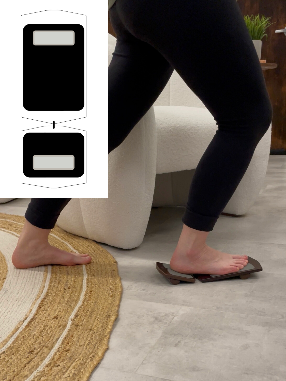 Stand with feet shoulder-width apart and place one foot on the Axis Pro. Shift weight onto the foot on the board and gently bend the knee and ankle forward. Allow the foot to naturally roll inward so the arch lowers toward the board.