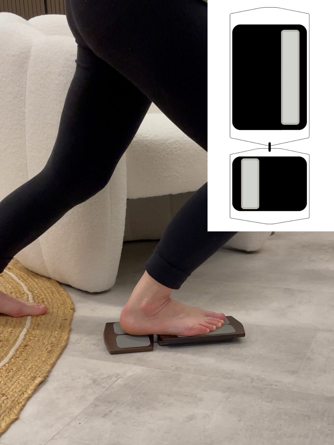 Stand in a staggered stance with the working foot on the Axis Pro. Shift your weight forward while pressing through the heel and midfoot, allowing the arch to gently lift. Maintain balance as the foot transitions into a more arched position.