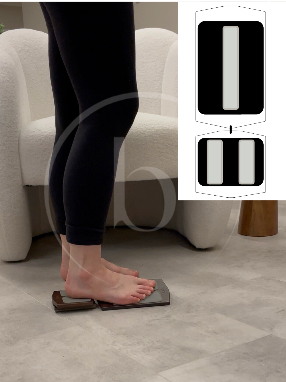 Stand with feet shoulder-width apart and a slight bend in the knees. Place the affected foot on the Axis Pro and keep the opposite foot on the ground. Shift weight onto the foot on the board while keeping the board level.